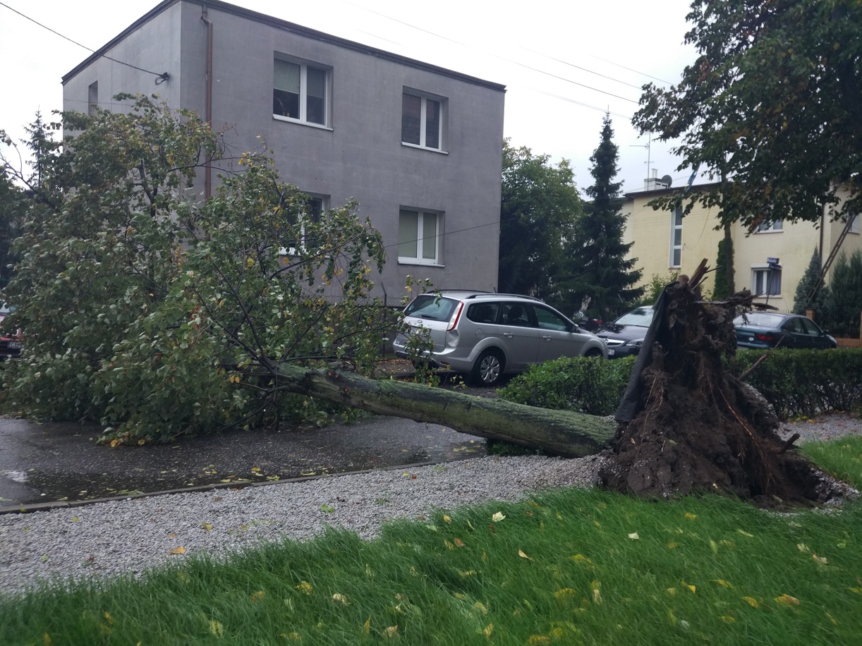 Na ul. Żmudzkiej wichura wyrwała z korzeniami pokaźne drzewo. Na szczęście nikt nie ucierpiał. Zagrożone były samochody parkujące na ulicy.