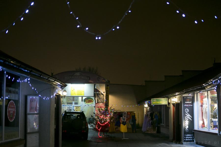 Wczoraj koleżanka zaciągnęła mnie na pierogi. A przed pierogarnią przy Dworcowej nastrój jak w grudniu! Choinka z lampkami, święcące girlandy, brakuje tylko sań z mikołajem.