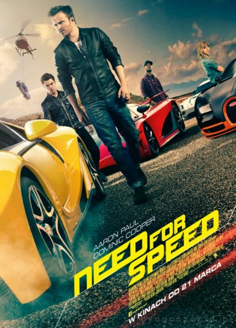 ?Need for Speed? to film oparty na serii gier o wyścigach samochodowych o tym samym tytule. Twórcom udało się uchwycić na ekranie poczucie wolności oraz ekscytację towarzyszące graczom, uzupełniając je dodatkowo o pasję do jeżdżenia, która sprawiła, że miłość do samochodów stała się ponadczasowa. Głównym bohaterem filmu jest Tobey Marshall (Aaron Paul), mechanik samochodowy, którego prawdziwą pasją są wyścigi uliczne. Próbując uratować rodzinny biznes od bankructwa, Tobey przystaje na propozycję bogatego i aroganckiego Dino Brewstera (Dominic Cooper). Gdy protagoniście wydaje się, że zdołał uratować warsztat przed finansową zapaścią, Dino wrabia go w przestępstwo. Dwa lata później Tobey wychodzi z więzienia, pałając żądzą zemsty. Doskonale zdaje sobie sprawę z tego, że istnieje tylko jeden sposób na doprowadzenie Dino do upadku – pokonanie go w legendarnym i niezwykle ryzykownym wyścigu samochodowym De Leon.
