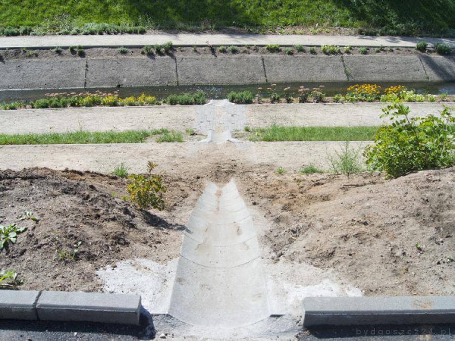 Na rysunkach obrazujących efekty rewitalizacji Starego Kanały widok bulwarów cieszy oko. Rzeczywistość okazała się inna. Bulwar nad kanałem na Okolu został zniszczony kilka miesięcy temu. Nie przez wandali, ale spływającą wodą deszczową.