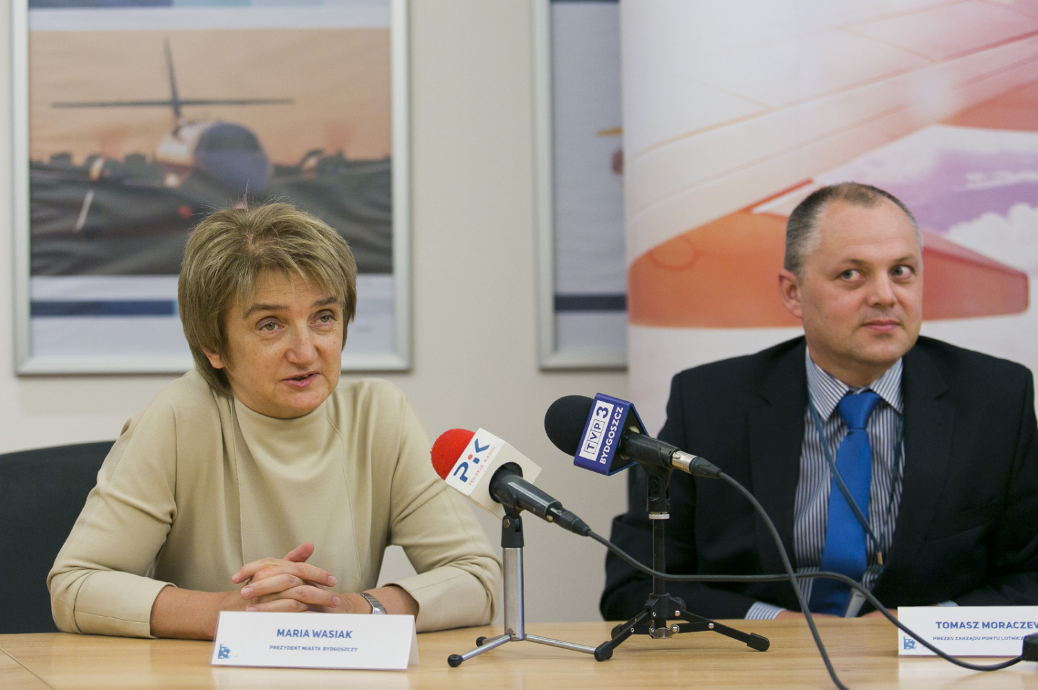 W konferencji udział wzięli również Maria Wasiak, zastępca prezydenta Bydgoszczy i Tomasz Moraczewski, prezes Zarządu Portu Lotniczego Bydgoszcz S.A.