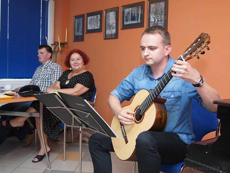 Prezentację twórczości niewidomego pisarza wzbogacił krótkimi impresjami muzycznymi grający na gitarze Adam Skrętny.