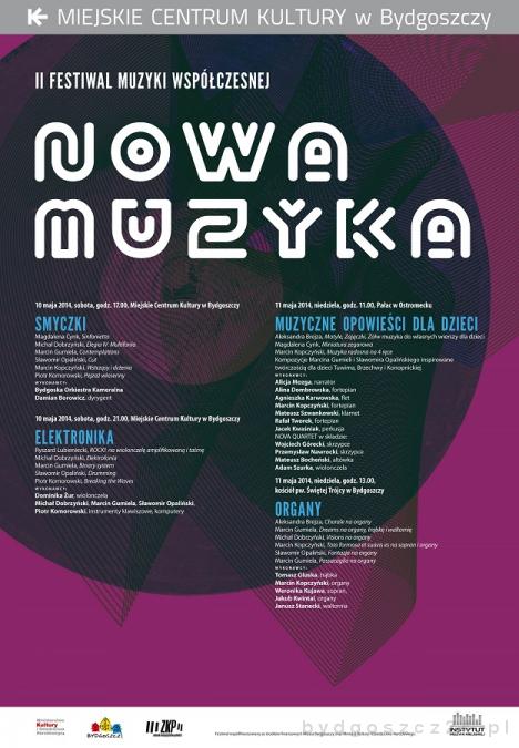 W czasie tegorocznej edycji Festiwalu Muzyki Współczesnej NOWA MUZYKA będzie można usłyszeć najnowsze kompozycje utalentowanych twórców, które niejednokrotnie będą światowymi prawykonaniami. Festiwal zainauguruje Koncert Muzyki Smyczkowej w sobotę, 10 maja, o godz. 17 w Miejskim Centrum Kultury. Bydgoską Orkiestrę Kameralną poprowadzi Damian Borowicz. Utwory Magdaleny Cynk, Michała Dobrzyńskiego, Marcina Gumieli, Sławomira Opalińskiego oraz Piotra Komorowskiego dadzą możliwość poznania świeżego spojrzenia na tradycyjny skład kwintetu smyczkowego.