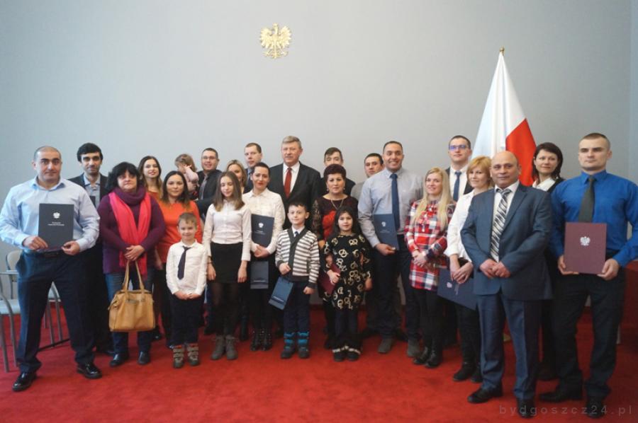 Na pierwszej w tym roku uroczystości w urzędzie wojewódzkim nadania obywatelstwa cudzoziemcom towarzyszyli ich krewni i bliscy. Nowi polscy obywatele pochodzą głównie zza naszej wschodniej granicy: Białorusi, Rosji Ukrainy i Armenii, ale także z daleka: z Syrii i Egiptu.