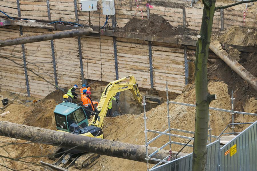 Jak informowaliśmy, we wrześniu na działce przy Nowym Rynku zaczęły się prace poprzedzające budowę nowej siedziby Sądu Okręgowego. Rozebrano stojący pod skarpą nieużywany budynek z czerwonej cegły i pozostałości muru oporowego oraz usunięto płyty parkingowe. Teraz trwają prace budowlane.