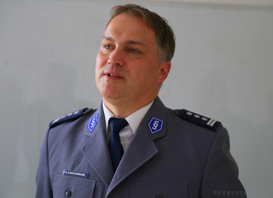 Pełniącym obowiązki komendanta miejskiego policji w Bydgoszczy jest od dzisiaj insp. Piotr Stachowiak ? dotychczasowy komendant miejski policji we Włocławku. Rozkaz podczas uroczystej zbiórki wręczył nowemu komendantowi bydgoskich policjantów szef policji w naszym regionie insp. Paweł Spychała. Jednocześnie podziękował mł. insp. Sławomirowi Szymańskiemu, który przez ponad tydzień dowodził bydgoskimi policjantami po przeniesieniu poprzedniego komendanta mł. insp. Andrzeja Cieślika na stanowisko komendanta policji w Świeciu nad Wisłą.