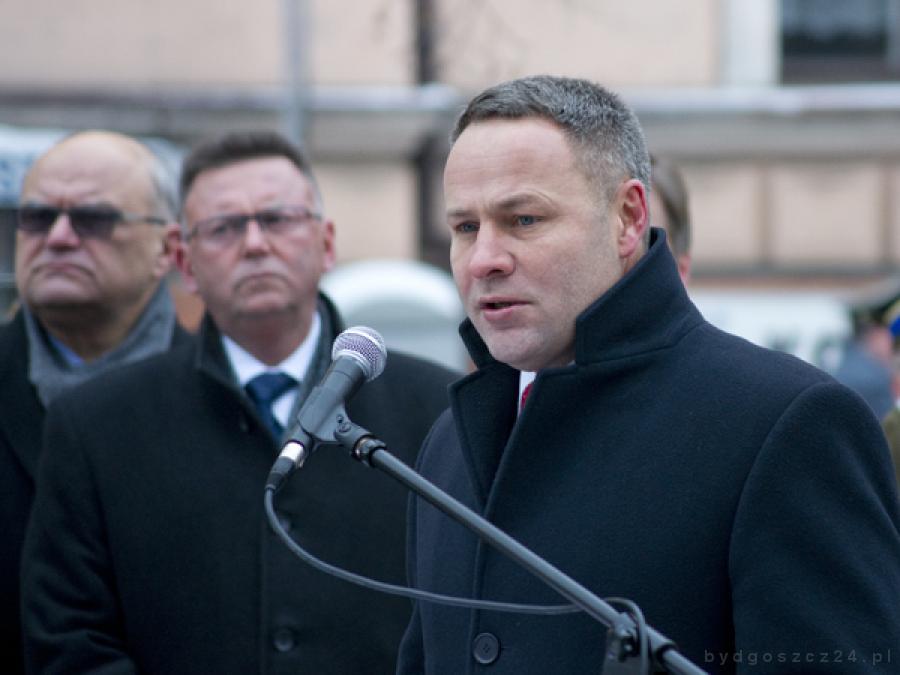 - 20 stycznia 1920 r. to dzień spełnionych nadziei i marzeń o wolności. Dzień historycznej sprawiedliwości, zapisany w traktacie wersalskim. Sprawiedliwości, na którą trzeba było czekać 148 lat – powiedział Rafał Bruski. Prezydent zaapelował, by wolność przyjmować jako odpowiedzialne zadania i zobowiązanie, by z wolności po prostu dobrze korzystać. Przypomniał dynamiczny rozwój Bydgoszczy po jej powrocie w granice Rzeczypospolitej, “dzięki mądrym decyzjom umacniającym przemysłowe i handlowe, a także kulturowe znaczenie miasta”. – Podniosła się w krótkim międzywojennym czasie do rangi jednego z największych miast Polski – powiedział.