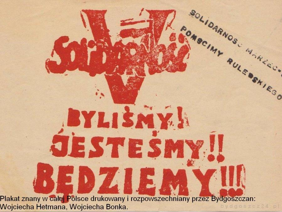 Obchody 31. rocznicy wprowadzenia stanu wojennego rozpoczną się dzisiaj o godzinie 17.30 w kościele oo. jezuitów przy placu Kościeleckich. Odprawiona zostanie uroczysta Msza święta w intencji Ojczyzny i ofiar stanu wojennego, poprzedzona modlitwą różańcową. Po zakończeniu liturgii w uformowanym szyku ze sztandarami na czele, uczestnicy uroczystości przemaszerują ulicami Przy Zamczysku, Grodzką, Mostową, Stary Port pod budynek z tablicą upamiętniającą siedzibę Międzyzakładowego Komitetu Założycielskiego i pierwszego Zarządu Regionu Bydgoskiego NSZZ ?Solidarność?, splądrowaną i zamkniętą przez SB 13 grudnia 1981 r. Przemarsz rozpocznie się od złożenia kwiatów przed dziękczynną tablicą Solidarności za odzyskana wolność Ojczyzny, znajdująca się w kruchcie kościoła oo. jezuitów.