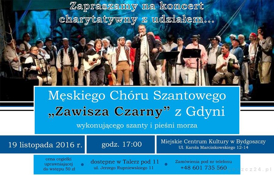 Natomiast w sobotę, 19 listopada, w godz. 17.00-19.00 w sali koncertowej Miejskiego Centrum Kultury (ul. Marcinkowskiego) część artystyczna połączona będzie z koncertem charytatywnym pn. ?Talerz dla seniora?. Gwiazdą koncertu będzie Męski Chór Szantowy ?Zawisza Czarny” z Gdyni. Z inicjatywy Fundacji Pro Omnis zbierane będą środki na ufundowanie obiadu dla seniorów, którzy znajdują się w trudnej sytuacji zdrowotnej lub życiowej. Beneficjentami zbiórki będą osoby wytypowane z listy udostępnionej przez Fordoński MOPS. Animatorzy fundacji zapowiedzieli, że pragnęliby sukcesywnie objąć wsparciem seniorów również z innych bydgoskich osiedli.