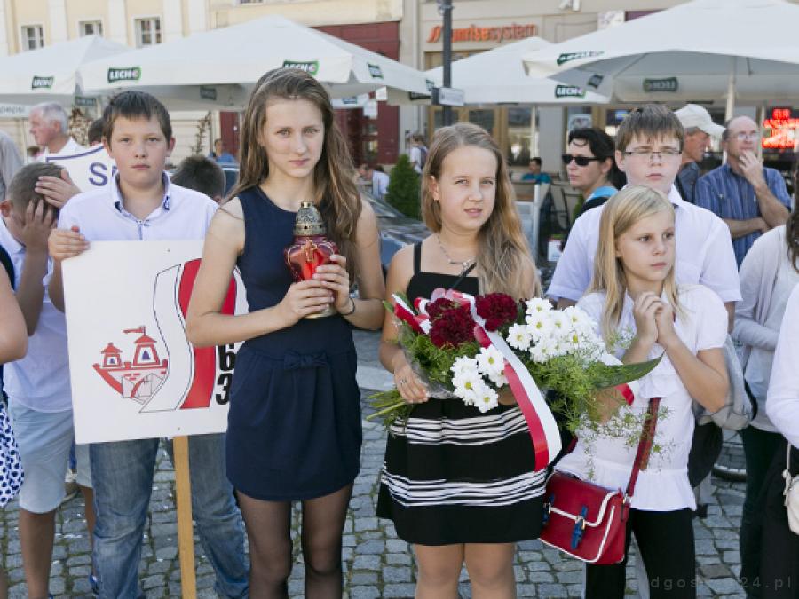 Po wspólnej modlitwie wszyscy przeszli na Stary Rynek, by uczestniczyć w patriotycznej manifestacji. Prezes Oddziału Bydgoskiego Związku Sybiraków Mirosław Myśliński przypomniał, że 17 września 1939 roku, sprzymierzona paktem Ribbentrop-Mołotow z Niemcami, potęga Związku Radzieckiego, runęła na wschodnie granice Rzeczypospolitej. – Krwawiącej Polsce, Armia Czerwona zadała zdradziecki cios. Układ o nieagresji między Polską a ZSRR zawarty w 1932 roku, który miał obowiązywać do 1945 roku został brutalnie, jednostronnie zerwany – powiedział Myśliński. Przypomniał dramatyczne wydarzenia i przerażające liczby, a także opisał los osób wywożonych na nieludzką ziemię, na Syberię. – 240 tysięcy żołnierzom i kilkunastu tysiącom oficerów odmówiono statusu jeńców wojennych. Po wielu ślad zaginął – mówił, dodając, że rozpoczął się czas mordowania polskich elit opiniotwórczych, deportacji, depolonizacji Kresów i sowietyzacji ludności. Stwierdził, że w ewidencji bydgoskiego okręgu zarejestrowanych było 1600 Sybiraków, zostało – 450. – Związek nasz zawsze działał zgodnie ze swoim hasłem “Pamięć zmarłym, żyjącym pojednanie – zakończył Myśliński.