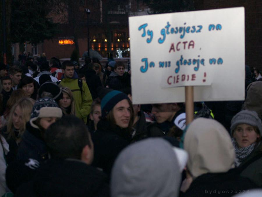 Poseł Eugeniusz Kłopotek z PSL zarzuca z kolei protestującej w Bydgoszczy młodzieży, że nie zna ona porozumienia ACTA i jej protest nazywa “owczym pędem”.