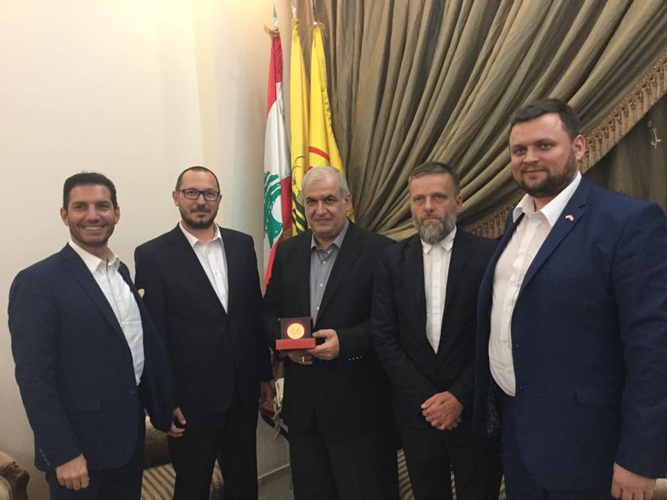 "Ogromnie pozytywne spotkanie z Mohammadem Raad, liderem ugrupowania Hezbollah. Warto rozmawiać, osobiście skonfrontować mity z rzeczywistością. Siedziba Hezbollahu jest słabiej (albo dyskretniej!) chroniona niż pewne biuro na Nowogrodzkiej. Sporo konkretnych deklaracji, dużo dobrej chemii. Na moje ręce cała ekipa otrzymała ostatni (!) medal Hezbollahu" - skomentował klimat odbytych rozmów. Podczas wizyty w Libanie Pawłowi Skuteckiemu towarzyszy Przemysław Skrzypek, prezes Zarządu Polsko-Arabskiego Klubu Społeczno-Gospodarczego, który ma siedzibę w naszym mieście.