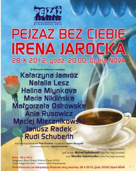 W koncercie galowym występują znani polscy artyści. W Pejzażu bez Ciebie, poświęconemu Irenie Jarockiej wystąpią: Katarzyna Jamróz, Natalia Lesz, Halina Mlynkova, Maria Niklińska, Małgorzata Ostrowska, Ania Rusowicz, Maciej Miecznikowski, Janusz Radek, Michał Milewicz. Towarzyszyć im będzie zespół instrumentalno-wokalny pod kierownictwem Piotra Dziubka i Adama Skrzypka.