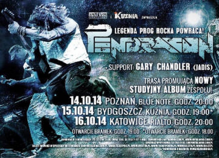 Pendragon, brytyjski zespół muzyczny, grający rocka progresywnego, laureat tegorocznych nagród Classic Rock Society 15 października zagra koncert w bydgoskiej Kuźni. Muzyka Pendragon przyciągnie na pewno fanów takich zespołów jak Genesis, Marillion, Arena czy IQ. Wysmakowane melodie, intrygujące wokale i błyskotliwe instrumentalne popisy to elementy, które składają się na charakterystyczny styl grupy. W muzyce formacji przeplatają się rozmaite motywy i wpływy, obok celtyckich również dźwięki flamenco. Dopracowane teksty tworzą z muzyką przekonującą i poruszającą całość. Zespół gościł w Polsce już wiele razy i za każdym razem był bardzo ciepło przyjmowany przez publiczność.