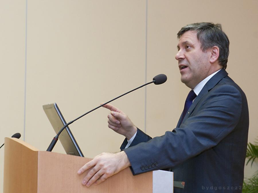 W Bydgoszczy wicepremier Janusz Piechociński odwiedził Uniwersytet Technologiczno-Przyrodniczy. UTP liczy na pomoc rządu w realizacji unijnego projektu Centrum Innowacyjności Wsi. Wicepremier gratulował rektorowi prof. Antoniemu Bukalukowi znaczenia uczelni na mapie gospodarczej kraju. – To piąta uczelnia w kraju w rankingu zdolności kontaktów ze światem gospodarki i służby gospodarce – chwalił Piechociński. Wykładu wicepremiera na temat “Polska gospodarka w dobie wyzwań XXI wieku? wysłuchali m.in. wojewoda Ewa Mes, marszałek sejmiku Piotr Całbecki, przewodnicząca sejmiku Dorota Jakuta, prezydent Bydgoszczy Rafał Bruski. Wykład, choć półgodzinny, wypełniony był mnóstwem szczegółowych spostrzeżeń, dygresji i ocen. Wiele z nich mogłoby być tematami do osobnych rozważań. Jeśli premier mówił o wyzwaniach XXI wieku nie mógł nie wspomnieć o kryzysie, który staje się coraz bardziej wszechobecny.