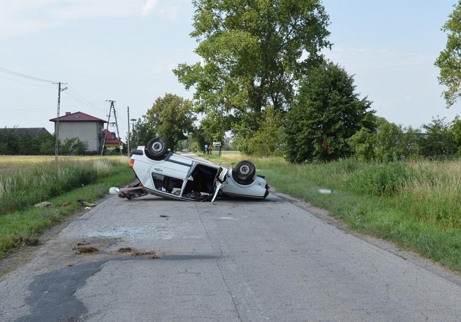 W sobotę, 25 czerwca, około godziny 14:00 w Mierucinie kierujący volkswagenem golfem 62-letni mieszkaniec powiatu inowrocławskiego na skutek nadmiernej prędkości stracił panowanie nad pojazdem, w wyniku czego dachował. Mężczyzna nie jechał sam. Obok niego siedziała 74?letnia kobieta, która doznała obrażeń głowy i kręgosłupa.