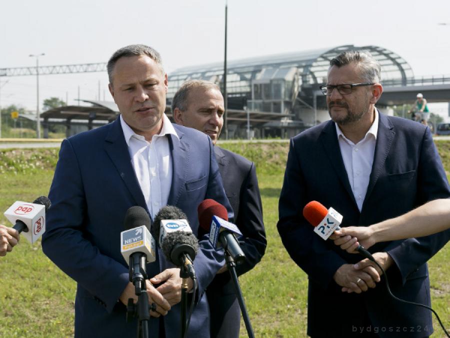 - Jesteśmy na tle węzła multimodalnego. Jest to jeden z nowocześniejszych obiektów tego typu w naszym województwie. Najnowocześniejszy – opisał miejsce zorganizowania konferencji prasowej marszałek województwa Piotr Całbecki. – W nowej perspektywie chcielibyśmy w najbliższych latach budować nie aż tak okazałe, ale w większości naszych miast i miasteczek podobne obiekty, które integrują transport publiczny – przedstawił plany Całbecki i dodał, że kolejnym krokiem w integrowaniu województwa będzie program BiT City 2. – Mamy jeszcze sporo do zrobienia. Aby te projekty zrealizować potrzebne jest doświadczenie, współpraca i jesteśmy tego przykładem – podkreślił marszałek województwa.