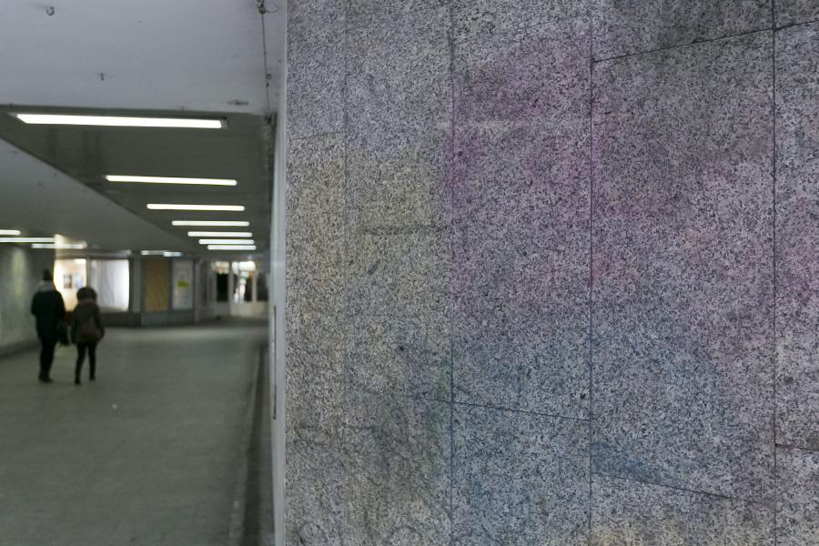 W związku z alarmującymi publikacjami dokonaliśmy oględzin przejścia podziemnego pod rondem Jagiellonów. Informacje o syfie, bezdomnych i nieprzyjemnym odorze się nie potwierdziły. Natomiast tynk faktycznie odpadł w kilku miejscach. Natrafiliśmy też na brudne nacieki na ścianach.