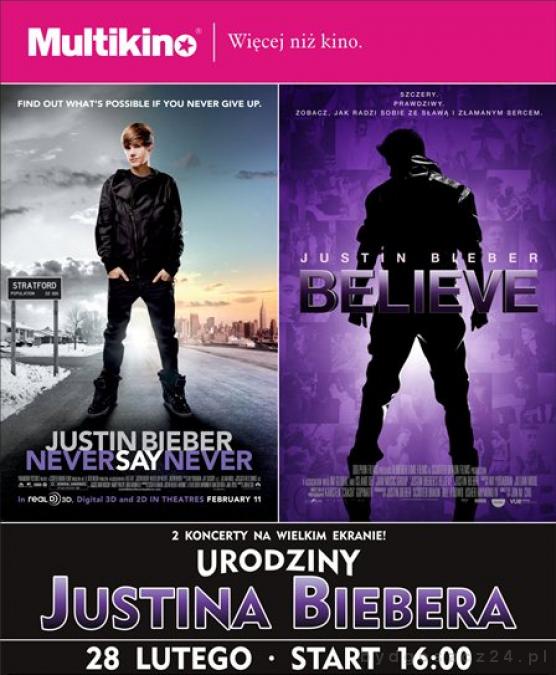 W ostatni dzień lutego z okazji 20. urodzin młodego artysty, które przypadają na 1 marca Multikino zaprasza na pokaz filmów: ?Justin Bieber: Never Say Never? w 3D oraz ?Justin Bieber. Believe?.
