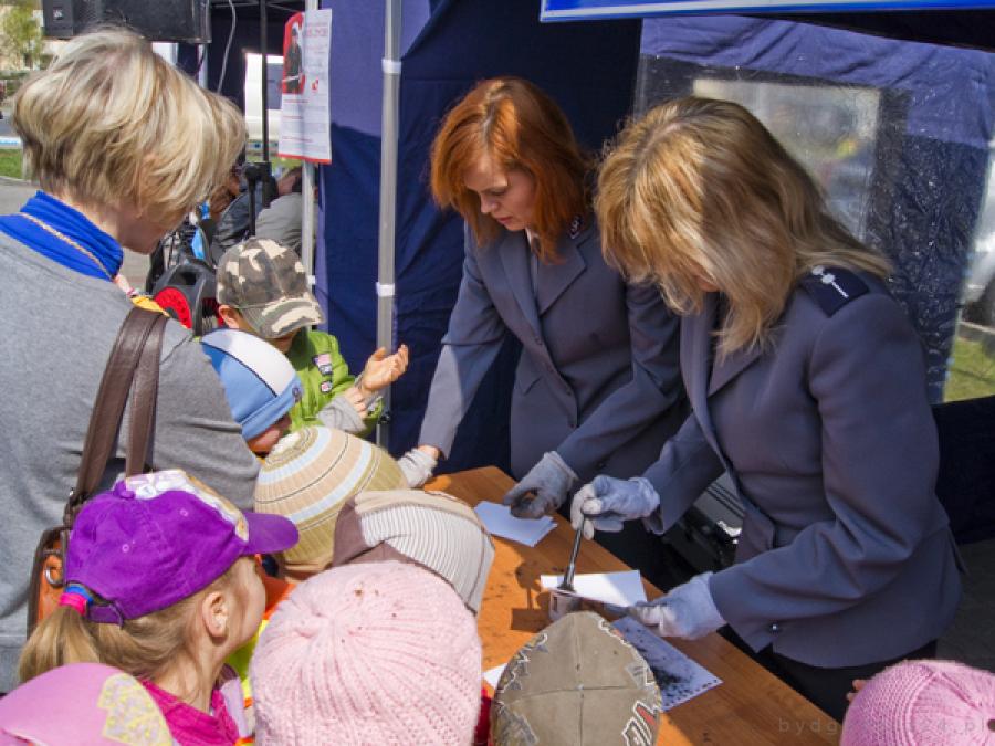 Dla blisko 200 zaproszonych przedszkolaków policjanci z komendy miejskiej w Bydgoszczy zorganizowali pokaz techniki sprzętu policyjnego. Największy podziw maluchów wzbudziło posłuszeństwo i inteligencja przeszkolonego policyjnego psa patrolowo-tropiącego. Dzieciaki mogły zasiąść za kierownicą wozu policyjnego, jak też uczestniczyć w operacji zdejmowania odcisków palców.