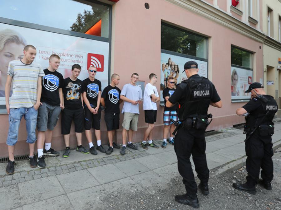Panie pośle Michale Stasiński, proszę zobaczyć, jakie "demokratyczne" standardy obowiązywały w Rzeczypospolitej i w naszym mieście, gdy nikt nie łamał konstytucji. Zaledwie trzy lata temu, 1 sierpnia 2014, bydgoscy policjanci tak "zabezpieczali" patriotyczną manifestację zorganizowaną dla uczczenia rocznicy wybuchu powstania warszawskiego, które to działania prewencyjne opisaliśmy w artykule: Interwencja policji przed uroczystością ku czci powstańców warszawskich godna PRL-u.