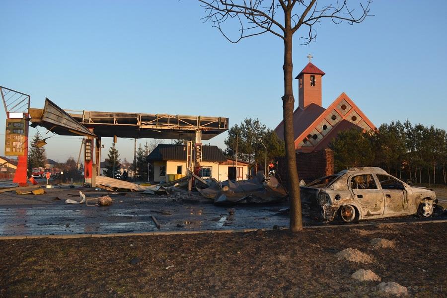 Wczoraj kilka minut po godz. 13:00 w Topólce (pow. radziejowski) podczas prac konserwacyjnych z nieustalonych na chwilę obecną przyczyn doszło do pożaru. Potem nastąpił wybuch dwóch butli z gazem LPG oraz kilkunastu małych butli z gazem. Znaczna część stacji paliw została zniszczona, spłonęły także dwa samochody osobowe zaparkowane na stacji. Siła eksplozji była tak duża, że w pobliskich domach i kościele zbiły się szyby. Na skutek tego zdarzenia nikt nie odniósł obrażeń.