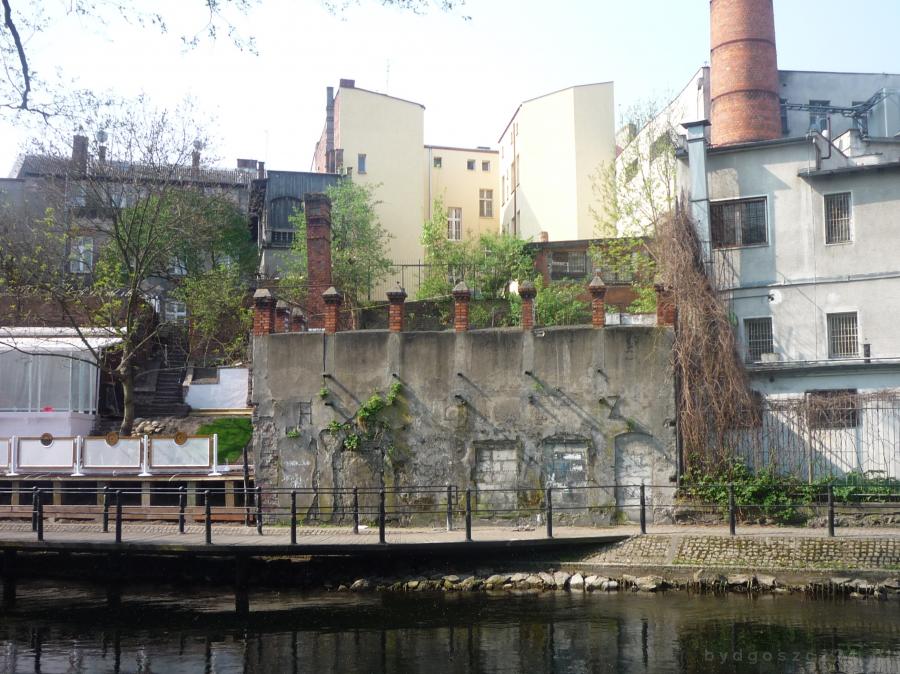 POZNAŃSKA 14 – to nie tylko okazała, wielomieszkaniowa, częściowo odnowiona kamienica, nieźle prezentująca się od frontu. Jej zaplecze to zdegradowana tzw. lodownia, ruina z zamurowanym wejściem i oknami, po byłym wydawnictwie. I właśnie ta rudera-bunkier widoczna jest od strony Wyspy Młyńskiej. Spacerujący brzegiem Młynówki ze zdziwieniem przechodzą obok obskurnie wyglądającej ściany z prześwitującym gazobetonem. Z dalszej perspektywy zaobserwować można, zmieniającą się na korzyść panoramę bydgoskiej Wenecji z powstającymi nowymi restauracjami, kawiarniami i właśnie ten opisywany, coraz bardziej zdewastowany fragment tej nieregularnej pierzei.