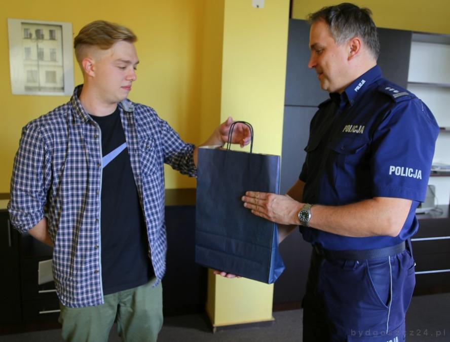 Pełniący obowiązki komendanta miejskiego policji w Bydgoszczy insp. Piotr Stachowiak pogratulował dzisiaj młodemu