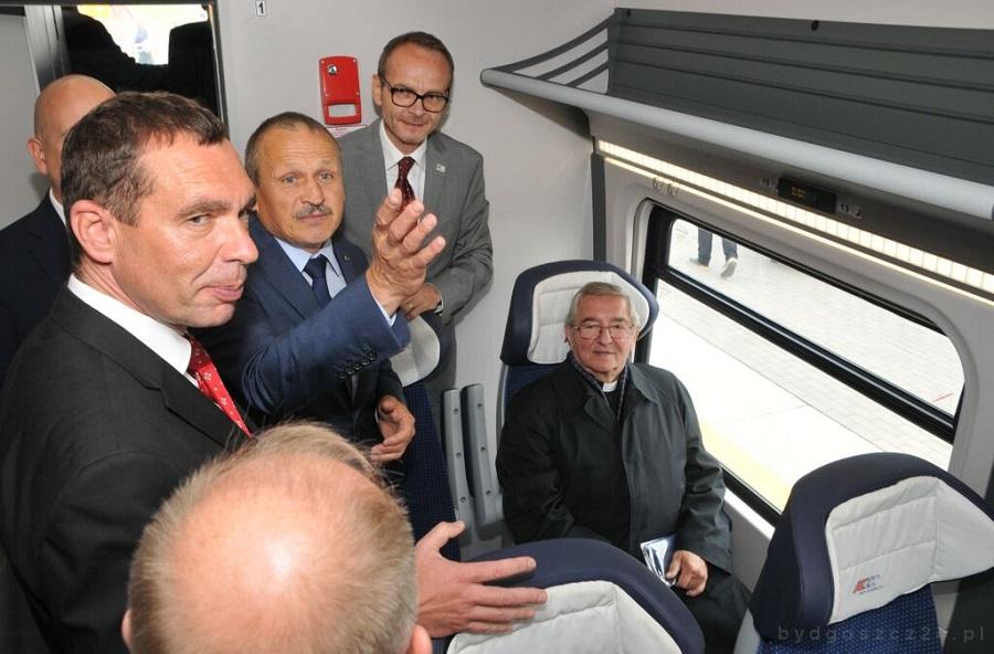 W rytm bębnów doboszy kolorowy korowód prowadzony przez wiceprezesa PKP IC Piotra Rybotyckiego i prezesa PESA Tomasza Zaboklickiego dotarł na peron torów targowych, gdzie szef bydgoskiej spółki i przedstawiciel przewoźnika nie kryli satysfakcji z debiutu pojazdu na gdańskich targach.