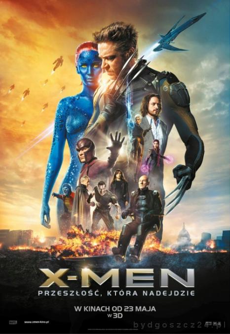 ?X-Men: Przeszłość, która nadejdzie? Bryana Singera (?X-Men?, ?Walkiria?) to spektakularny film science fiction ukazujący dalsze losy legendarnych superbohaterów, kulisy konfliktu między nimi i ich walki o akceptację. X-Men zawalczą o przetrwanie gatunków w dwóch epokach. Znani z poprzednich części bohaterowie połączą siły z młodszymi wersjami samych siebie, znanymi z filmu ?X-Men: Pierwsza klasa? i przeniosą się w przeszłość, by ocalić swoją i naszą przyszłość. W rolach głównych wystąpili: James McAvoy (?Pokuta?), Michael Fassbender (?Prometeusz?), Jennifer Lawrence (?Igrzyska śmierci?), Ian McKellen (trylogia ?Władca pierścieni?), Patrick Stewart (?X-Men?), Nicholas Hoult (?Był sobie chłopiec?), Omar Sy (?Nietykalni?), Hugh Jackman (?Wolverine?), Anna Paquin (serial TV ?Czysta krew?), Ellen Page (?Incepcja?) i Halle Berry (?Atlas chmur?). Film wyświetlany będzie zarówno w wersji 2D, jak i 3D.
