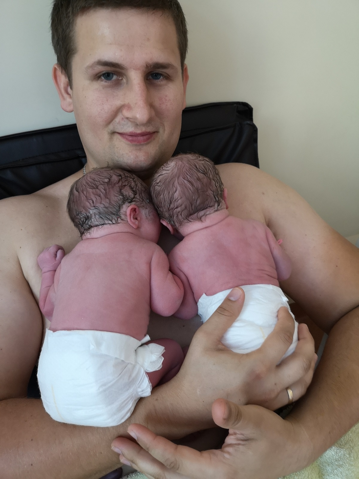 Na zdjęciu: Szczęśliwy tata Paweł z córeczkami...