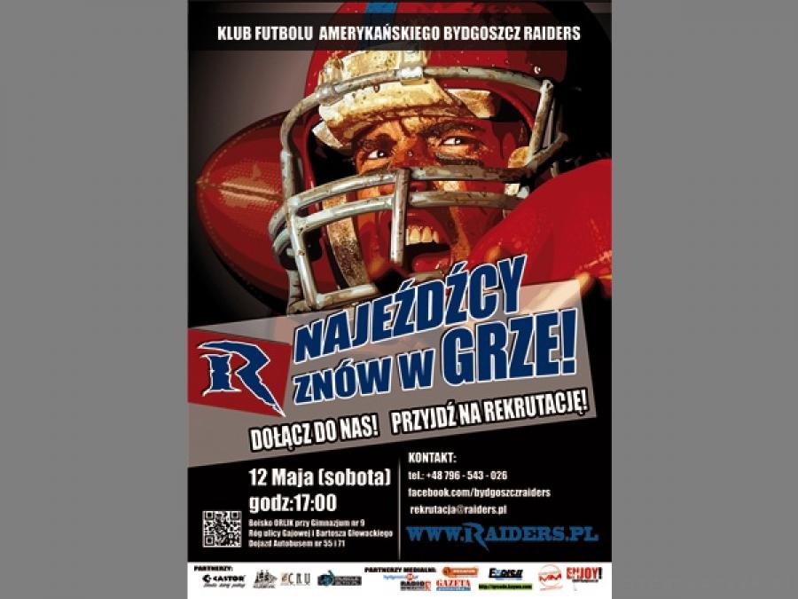 Rekrutacja zostanie dodatkowo połączona z imprezą powitalną Najeźdźców, która odbędzie się w czwartek 10 maja w Pubie Kubryk Pod Pokładem. Będzie to wspaniała okazja do wspólnej zabawy oraz rozmowy z zawodnikami Bydgoszcz Raiders. Więcej informacji na temat zespołu oraz samego naboru, a także wszelkie dane kontaktowe, można znaleźć na oficjalnej stronie internetowej klubu: www.raiders.pl lub na portalu społecznościowym Facebook: facebook.com/bydgoszczraiders.
