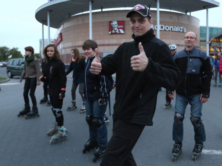 Pierwszy Nightskating w Bydgoszczy odbył się 4 maja ubiegłego roku. Organizatorzy określili ten przejazd na rolkach, uwzględniając liczbę jego uczestników, jako duży sukces. Dzisiaj, mimo niesprzyjającej, zimnej aury, na placu przed Galerią Pomorską zebrało się ponad 200 rolkarzy. Przeważali młodzi ludzie, którzy trzymając za ręce, o godz. 20 rekreacyjnym tempem ruszyli naprzód na ponadgodzinną przejażdżkę. Nie odstraszyły ich ciężkie chmury i prognozy pogody, zapowiadające deszcz.