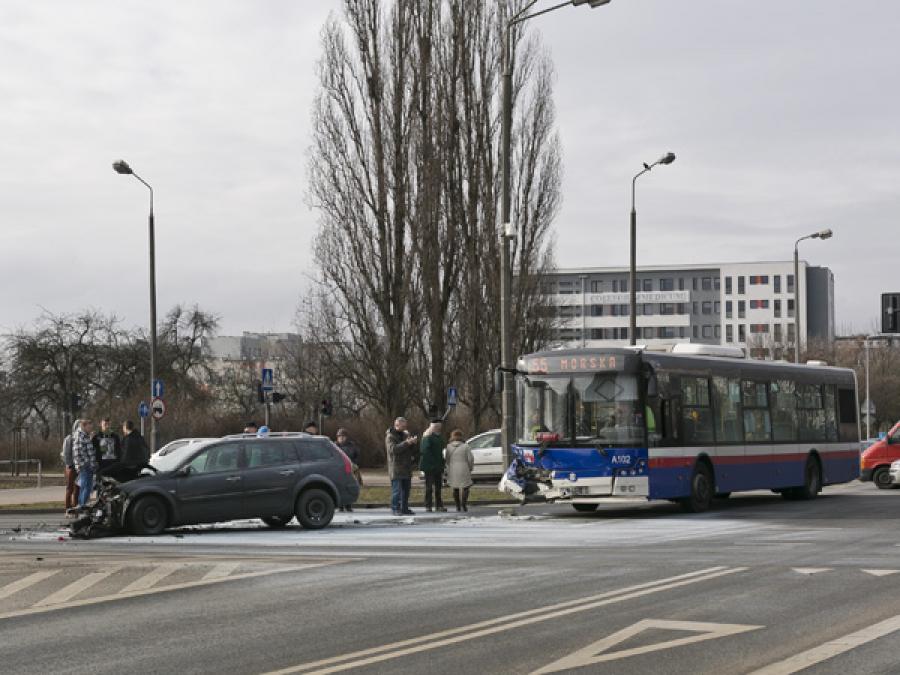 Do groźnego wypadku doszło dzisiaj przed południem na skrzyżowaniu alei Kardynała Stefana Wyszyńskiego z ulicą Powstańców Wielkopolskich. Jadący ulicą Powstańców Wielkopolskich od ulicy Gajowej samochód osobowy marki Renault Megane w trakcie manewru skrętu w lewo w aleję Kardynała Stefana Wyszyńskiego wpadł w nadjeżdżający z naprzeciwka autobus linii nr 55.