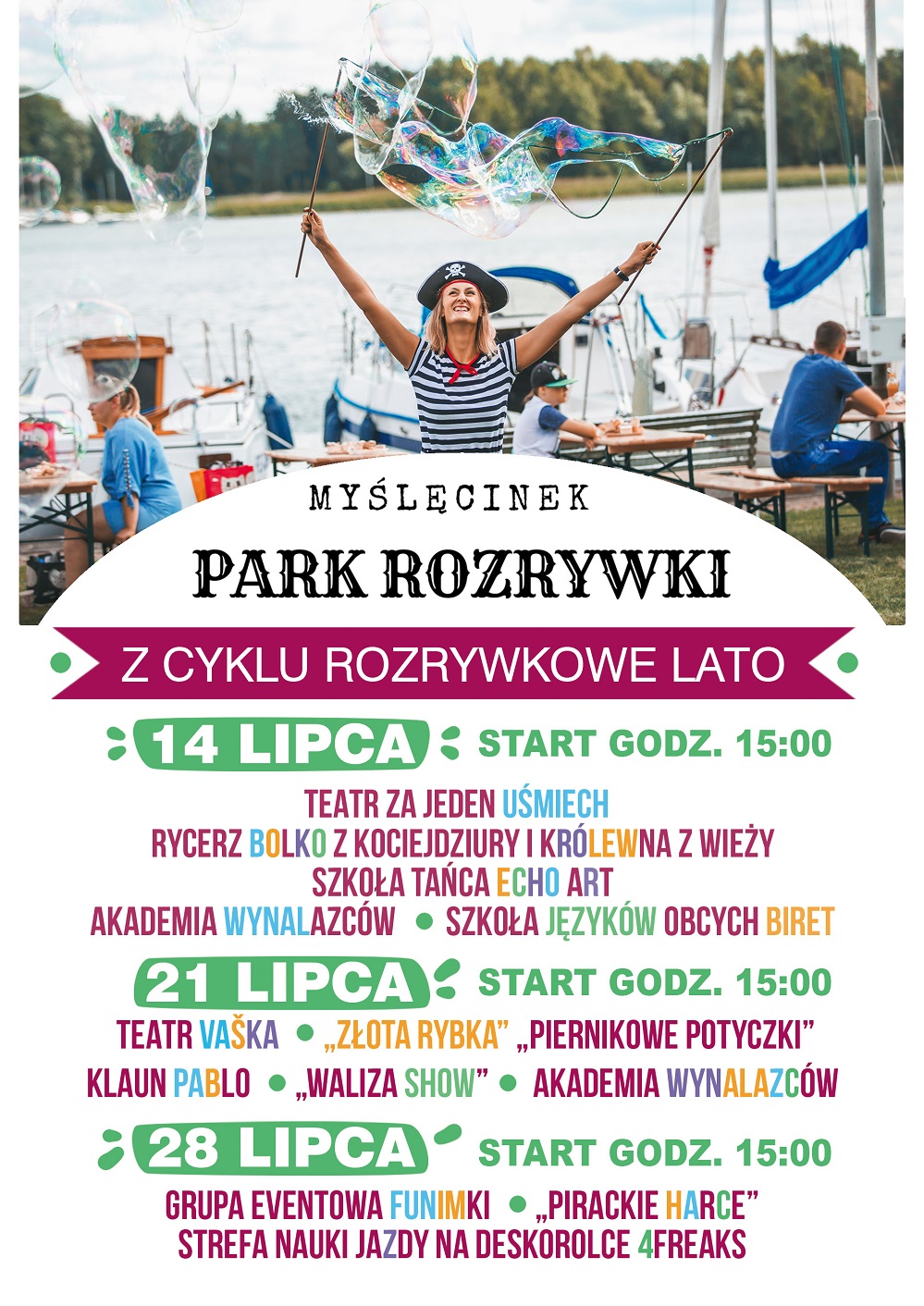 Do 18 sierpnia co tydzień czekać będą inne aktywności. Rozrywkowe lato otworzy spektakl o Rycerzu Bolko z Kociejdziury i Królewnie z Wieży w wykonaniu krakowskiego Teatru Za Jeden Uśmiech. To zabawna historia dzielnego rycerza pragnącego ocalić uwięzioną królewnę Matyldę. Zadanie to okaże się niełatwe i mali widzowie śledzić będą perypetie i przeszkody, które będzie musiał pokonać odważny rycerz.
