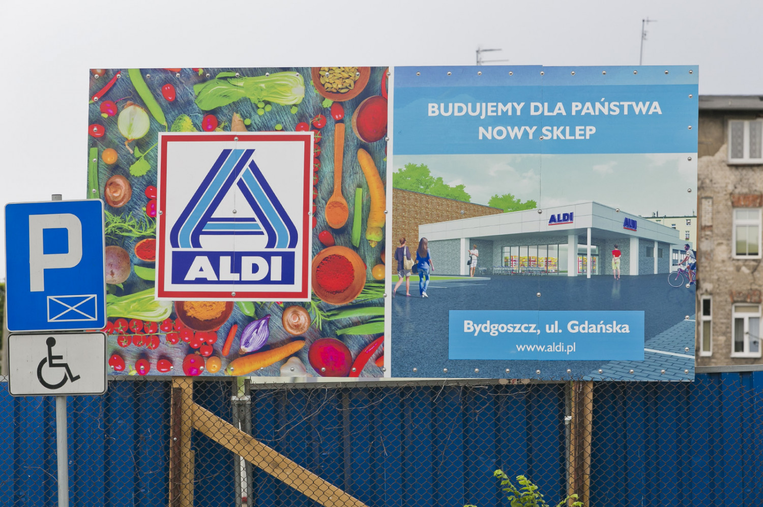 Wkomponowanie sklepu sieci marketów Aldi w nieruchomość przy ulicy Gdańskiej 133 nie było takie proste jak przypadku innych lokalizacji w Bydgoszczy. Wejście do dyskontu od ulicy Gdańskiej i Kościuszki prowadzić będzie przez tzw. ściany kurtynowe.