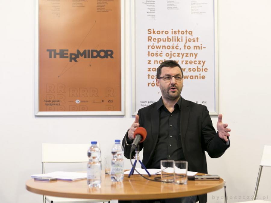 Reżyser zapowiada również: ?Do spektaklu, oprócz tekstu polskiej dramatopisarki, włączone zostały fragmenty nietłumaczonych dotąd przemówień Maksymiliana Robespierre’a wygłaszane w Konwencie Narodowym, m.in. ?O grzywnie srebra? (1791) ?O środkach utrzymania? (1791), ?O moralności politycznej? (1794), oraz zapomnianych, choć obecnych po polsku od lat 50-tych, tekstów Louisa Saint-Justa. Chcemy poprzez ten zabieg skonfrontować utopijne demokratyczne idee jakobinów z dzisiejszą rzeczywistością polityczną, społeczną i ekonomiczną.?