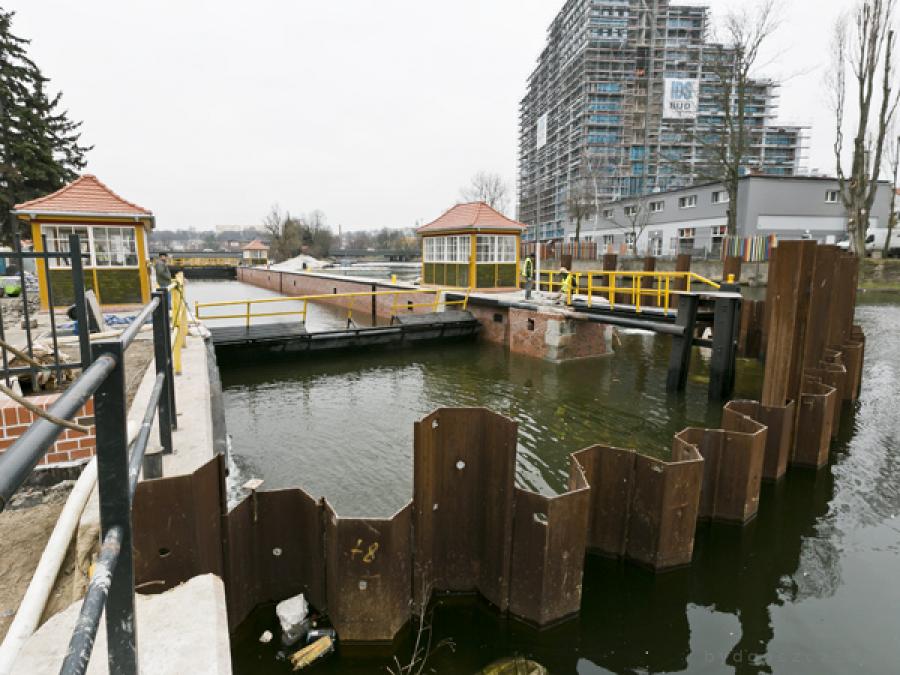 W październiku 2014 odpompowano wodę ze Śluzy Miejskiej. Ukazało się muliste dno i zniszczone ściany komory śluzowej. Wtedy stało się oczywiste, że zakres robót będzie musiał zostać poszerzony. Dodatkowe prace związane były m. in. z uszczelnianiem dna śluzy oraz zabezpieczeniem podmytego gruntu. Potem natrafiano na kolejne przeszkody. Planowany na wrzesień 2015 roku termin zakończenia remontu był kilka razy przesuwany. Dzisiaj zobaczyliśmy wodę w komorze śluzowej. To podobno dopiero próba. Regionalny Zarząd Gospodarki Wodnej w Gdańsku jutro przekaże dokładną informację.