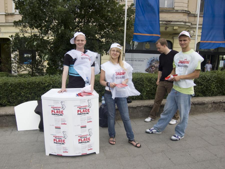 Do końca czerwca w centrum Bydgoszczy spotkać będzie można stoliki i młodych ludzi z emblematami Solidarności. Oprócz garści informacji i ulotek, przy stolikach można złożyć podpis pod obywatelskim projektem ustawy o wzroście płacy minimalnej. – Chcemy żeby płaca minimalna była na poziomie 50 procent przeciętnego wynagrodzenia, co na dzisiaj stanowi kwotę 1700 złotych. Sto tysięcy podpisów pewnie już zebraliśmy, ale chcemy pokazać parlamentarzystom skalę problemu i zebrać dużo więcej. W naszym województwie jedna czwarta mieszkańców żyje ubóstwie, ale o tym się nie mówi. Podniesienie płacy minimalnej może przynajmniej w jakimś stopniu pomóc w zwalczaniu biedy – mówi dla bydgoszcz24 Mirosław Jamroży, wiceprzewodniczący Zarządu Regionu NSZZ “Solidarność”. – W zbieraniu podpisów pomagają nam sympatycy i wolontariusze, między innymi studenci z Niezależnego Zrzeszenia Studentów – dodaje Jamroży.