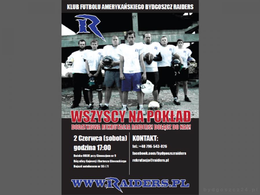 Tak jak poprzednio, na dodatkową rekrutację Raidersi serdecznie zapraszają wszystkich chętnych, którzy ukończyli co najmniej 16. rok życia. Warunki fizyczne nie są kwestią kluczową, gdyż wbrew istniejącym stereotypom futbol amerykański to sport, w którym realizować może się praktycznie każdy, bez względu na wzrost i wagę. Nabór zostanie przeprowadzony pod okiem głównego trenera zespołu ? Bartosza Spłocharskiego, posiadającego oficjalny certyfikat wydany przez Polski Związek Futbolu Amerykańskiego. Wszyscy chcący spróbować swoich sił w tej nowej, jak na polskie realia, ale niezwykle widowiskowej i dynamicznie rozwijającej się dyscyplinie sportu, proszeni są o zabranie ze sobą na rekrutację odzieży sportowej (zwłaszcza obuwia piłkarskiego). Dodatkowo organizatorzy proszą, aby osoby niepełnoletnie przygotowały zgodę rodziców lub prawnych opiekunów na wzięcie udziału w naborze. Na miejsce rekrutacji można dotrzeć bezpośrednio autobusami linii 55 i 71 (przystanek Głowackiego/Gajowa).
