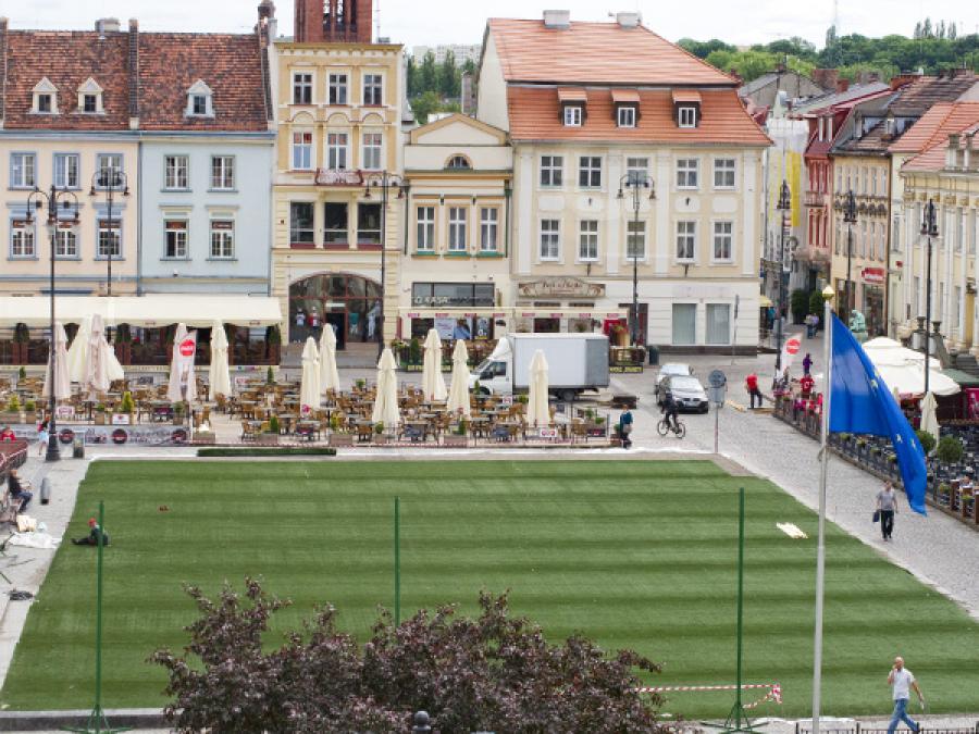 Boisko, które powstawało przed bydgoskim ratuszem przez kilka ostatnich dni, już wkrótce stanie się areną rozgrywek minifutbolowych. W piątek, 1 czerwca dojdzie na nim do starcia między reprezentacją Urzędu Miasta a bokserami KnockOut Promotions, którzy dzień później wystąpią na gali bokserskiej w Łuczniczce.