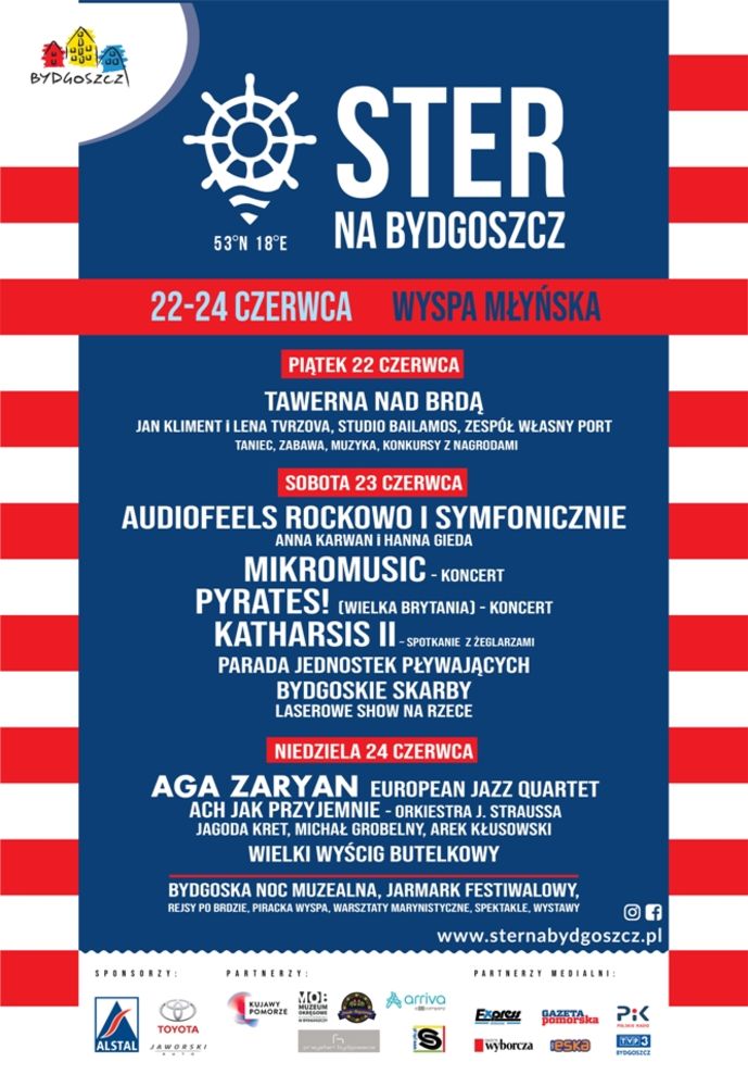 Dziesiątki jachtów, statków wycieczkowych, łodzi sportowych skorzystają z gościnności i wezmą udział w sobotniej paradzie jednostek pływających. Wydarzeniom na wodzie towarzyszyć będzie bogata oprawa kulturalna: koncerty na Wyspie Młyńskiej, Bydgoska Noc Muzealna, koncerty szantowe, warsztaty o tematyce żeglugi śródlądowej oraz tematyczne wystawy.