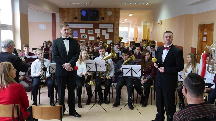 Na korytarzu bydgoskiego ?Elektronika? odbył się wyjątkowy koncert karnawałowy Młodzieżowej Orkiestry Dętej Technikum Elektronicznego w Bydgoszczy. Szkoła, oprócz spektakularnego sukcesu w ogólnopolskim rankingu techników (zajęcie trzeciego miejsca), pochwalić się może 50-osobową orkiestrą dętą, którą od kilkunastu lat prowadzi nauczyciel muzyki, mgr Krzysztof Beszczyński.