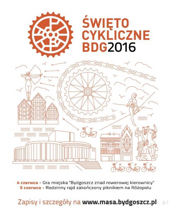 Najważniejszym punktem Święta Cyklicznego w Bydgoszczy będzie rodzinny rajd w niedzielę, 5 czerwca, który rusza o godz. 10 z placu Wolności. Trasa wiedzie przez Bartodzieje, Śródmieście, Szwederowo, Błonie, Okole, by zakończyć przejazd w Leśnym Parku Kultury i Wypoczynku. Na Różopolu odbędzie się piknik rodzinny ? będą pyszne kiełbaski, fitness, nauka pierwszej pomocy, zabawy dla najmłodszych, pokazy psów husky oraz konkursy, w których będzie można również wygrać wycieczki do Brukseli i mniejsze nagrody ufundowane przez licznych sponsorów. Każdy zarejestrowany i opłacony uczestnik otrzyma pakiet startowy ? jego zawartość jest zależna od numeru startowego. Organizatorzy przygotowali koszulki, bawełniane torby, odblaski, smycze i talony na grill. Zapisy i szczegóły na stronie masa.bydgoszcz.pl.