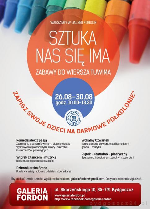 Organizatorzy na każdy dzień tygodnia przygotowali program, który na pewno zafrapuje najmłodszych fordoniaków twórczością Juliana Tuwima. I tak, w poniedziałek dzieci będą pisać wiersze, tworzyć kolaże i instrumenty muzyczne. Wtorek będzie spotkaniem z muzyką i tańcem. W środę naszych kolonistów odwiedzi prawdziwy radiowiec, który pokaże, jak się robi ptasie radio. W czwartek dzieci spróbują same tworzyć muzykę. Nie zabraknie gościa, który wprowadzi je w świat dźwięków. W ostatnim dniu warsztatów najmłodsi mieszkańcy Fordonu dowiedzą się, czym jest teatr cieni. Na koniec każdego dnia mali koloniści zostaną zaproszeni na drobny poczęstunek do kawiarni Black Jack, znajdującej się na pierwszym piętrze Galerii Fordon.