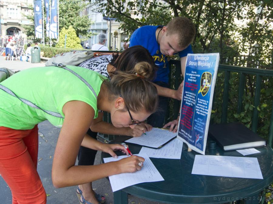 Od dzisiaj inicjatorzy referendum w sprawie likwidacji Straży Miejskiej w Bydgoszczy wyszli na ulice i rozpoczęli zbiórkę podpisów wśród bydgoszczan. Jako pierwszy uruchomiony został punkt przy ul. Mostowej. Reakcja przechodniów na pytanie: “Czy zechce Pani/Pan udzielić poparcia dla przeprowadzenia referendum dotyczącego likwidacji Straży Miejskiej w Bydgoszczy?” jest nad wyraz pouczająca. Nie minęły dwie godziny, a już udało zebrać się blisko 200 podpisów.