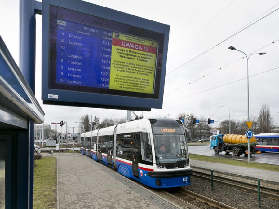 Na elektronicznych tablicach przystankowych ukazał się komunikat o awarii. Ale na rozkładzie jazdy nadal informowano, o której odjedzie następny tramwaj do pętli Łoskoń, chociaż chodziło o Wyścigową, bo dalej jazda tramwajem była niemożliwa.