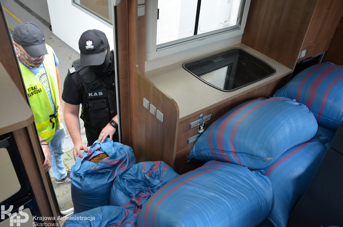 600 kg nielegalnego tytoniu do palenia zatrzymali podczas wspólnych działań funkcjonariusze kujawsko-pomorskiej KAS oraz Nadwiślańskiego Oddziału Straży Granicznej.