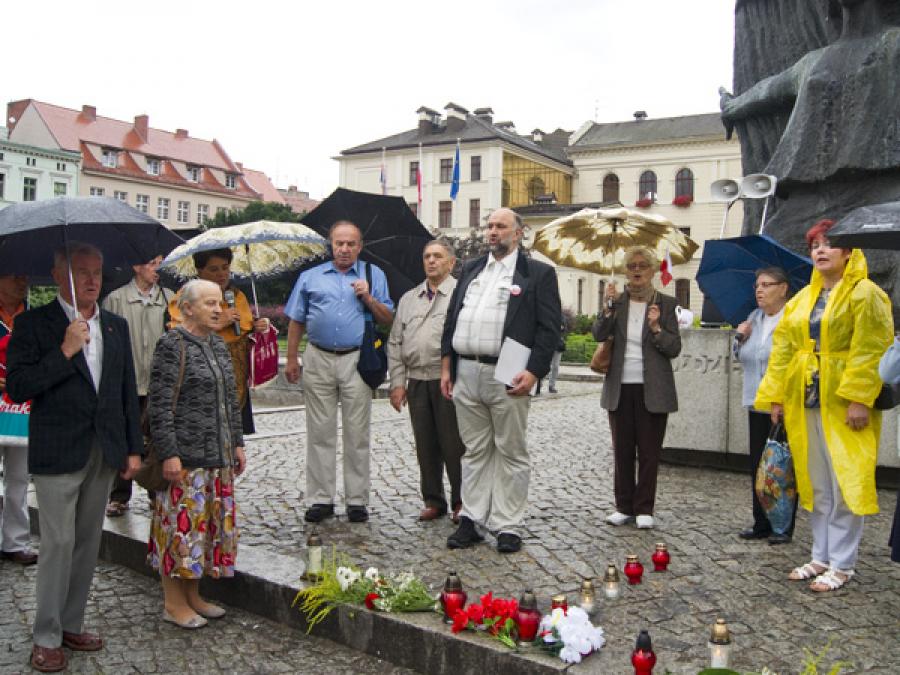 Kilkadziesiąt osób, mimo padającego deszczu, zebrało się dzisiaj pod pomnikiem Walki i Męczeństwa Ziemi Bydgoskiej, by jak co miesiąc uczcić pamięć ofiar katastrofy smoleńskiej z 10 kwietnia 2010 r.
