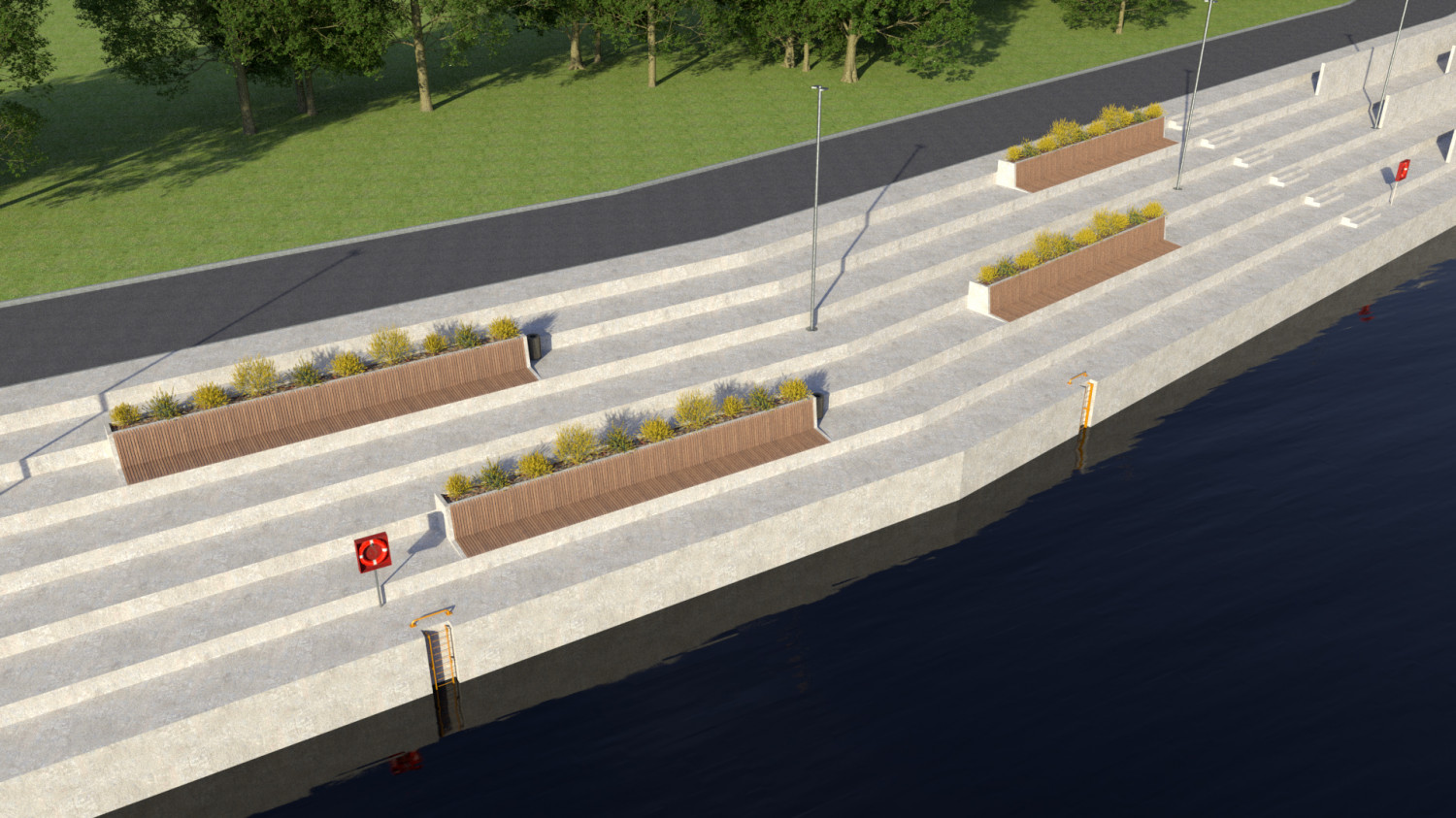 Nabrzeże ma być miejscem wypoczynku i rekreacji z siedziskami. Umocnione nabrzeże będzie również pełniło funkcję ochronną (ostrogi) i będzie wzmacniać projektowaną drogę dojazdową do planowanego w przyszłości portu. Finisz prac projektowych planowany jest po wakacjach. Urząd Miasta jeszcze w tym roku zamierza wyłonić wykonawcę nowego nabrzeża.
